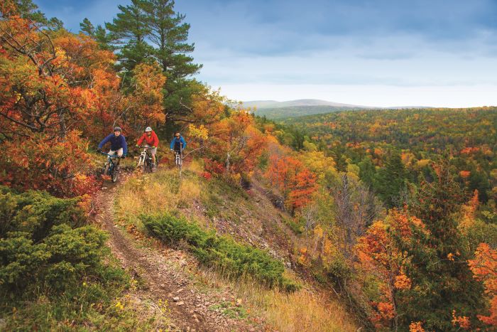 Go—The view atop Sugarloaf—ragged Superior shoreline and rumpled forest—will whet your appetite to cover more terrain with a mountain bike. The weaving singletrack of the North Trails Loop runs along the Dead River.