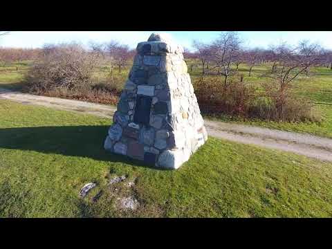 Located on old US-31, just north of Kewadin in the south end of Antrim County, the cairn was constructed of 83 stones, one furnished by each county in Michigan and inscribed with the donating county’s name. The exception was Wexford County’s “stone,” which was actually a two-foot-square piece of rubber with the county’s name engraved on an attached steel plate. The stones were transported free of charge to the site by the Père Marquette and Pennsylvania railroads. Masons from Antrim County and workers from the Michigan Highway Department constructed the cairn.